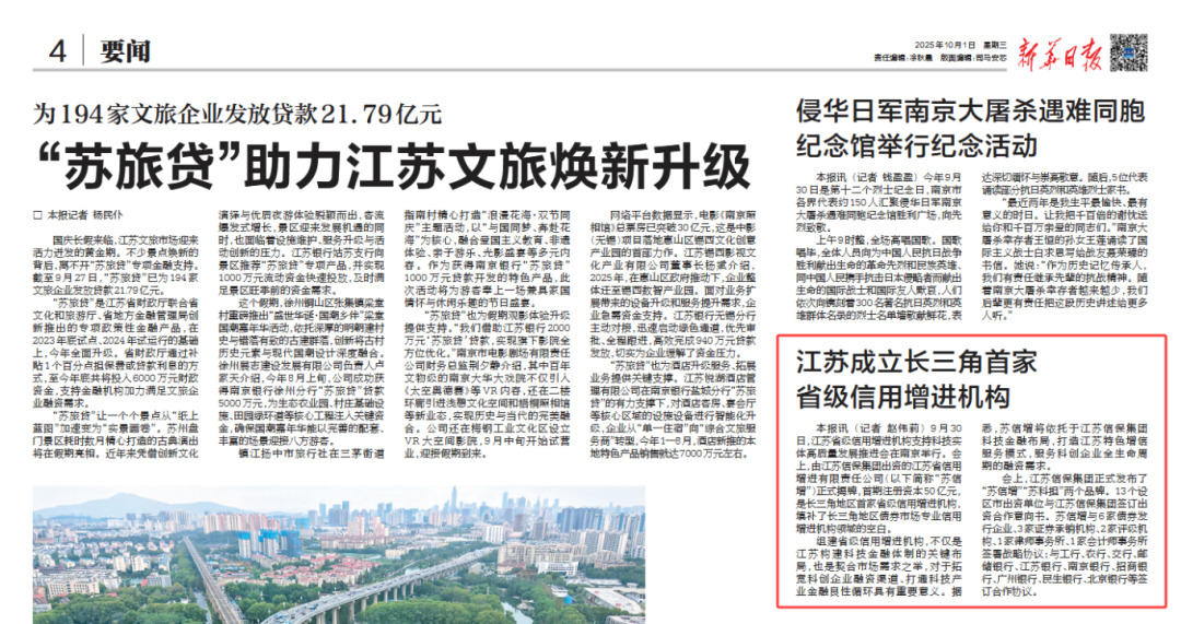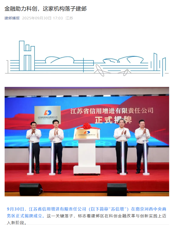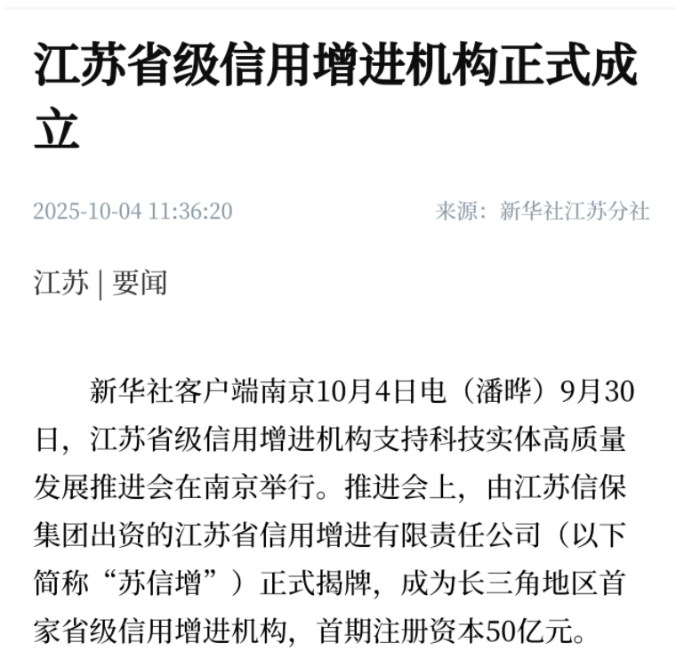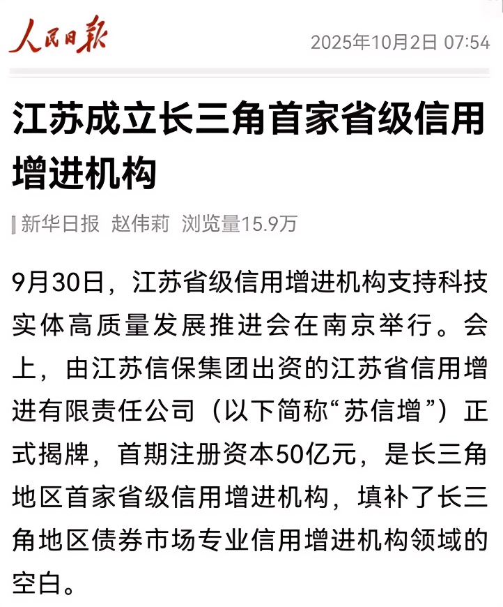 近日,江蘇省信用增進(jìn)有限責(zé)任公司正式成立。作為長(zhǎng)三角地區(qū)首家省級(jí)信用增進(jìn)機(jī)構(gòu),填補(bǔ)了“長(zhǎng)三角”地區(qū)債券市場(chǎng)專業(yè)信用增進(jìn)機(jī)構(gòu)領(lǐng)域的空白,獲得了人民日?qǐng)?bào)、新華社、新華日?qǐng)?bào)、金融時(shí)報(bào)等多家權(quán)威媒體集中報(bào)道。