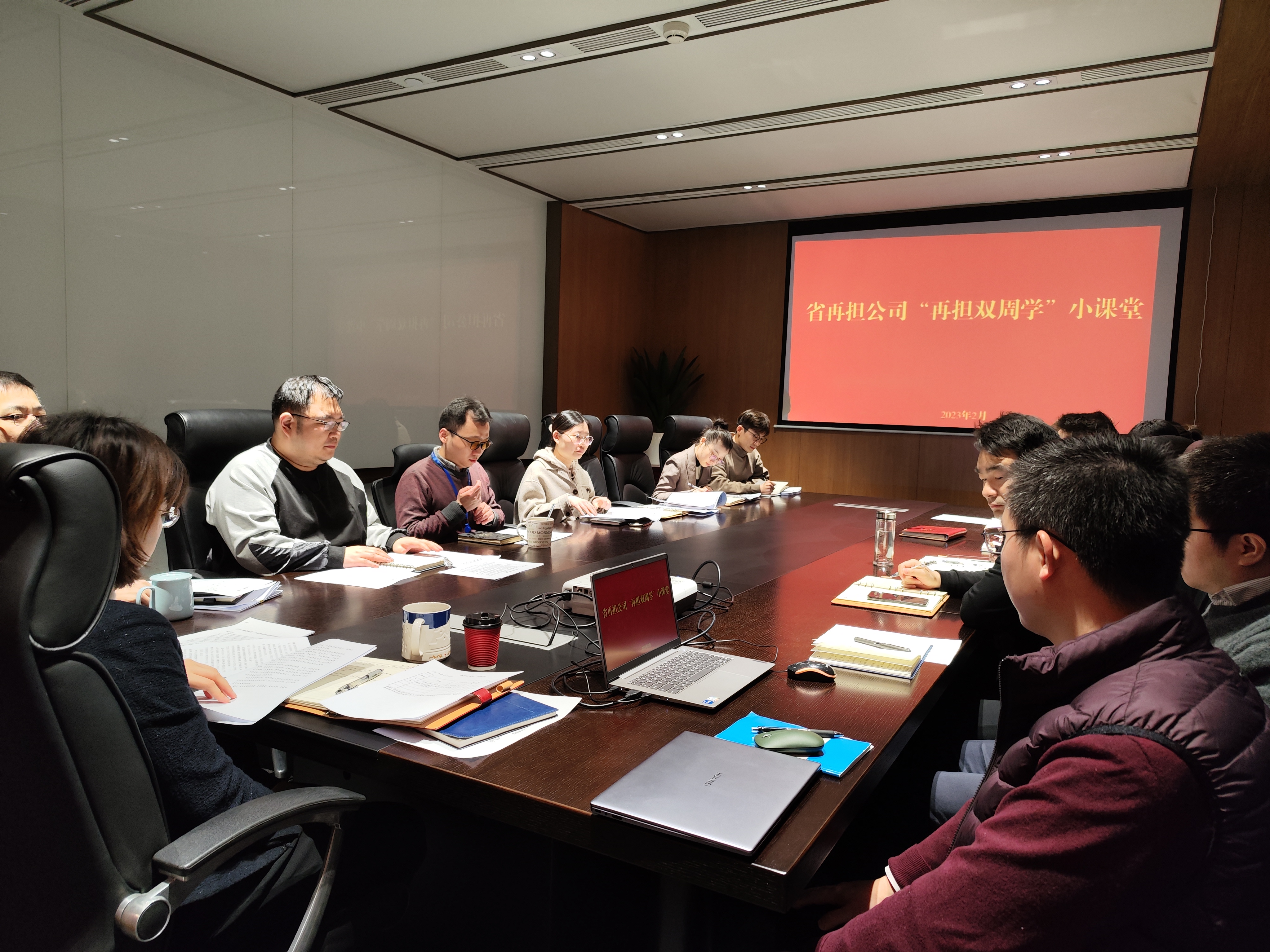 為加強公司人才隊伍建設,提高員工綜合能力水平,促進公司“雙全面”,2月27日,省再擔公司舉辦“再擔雙周學”小課堂活動。會議由公司負責人主持,公司全體員工參加。