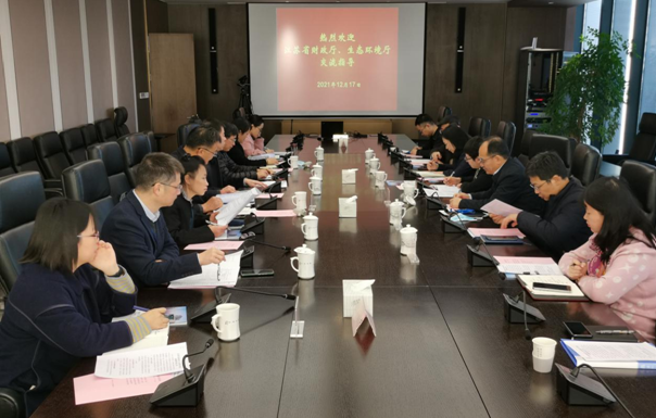 12月17日,江蘇省財政廳自然資源和生態環境處韓召迎處長和生態環境廳財審處紀金星處長一行到集團交流環保產業金融服務相關工作。集團黨委委員、副總裁仇雪嶸、殷益東出席。產業金融部、區域金融部有關人員參加調研。