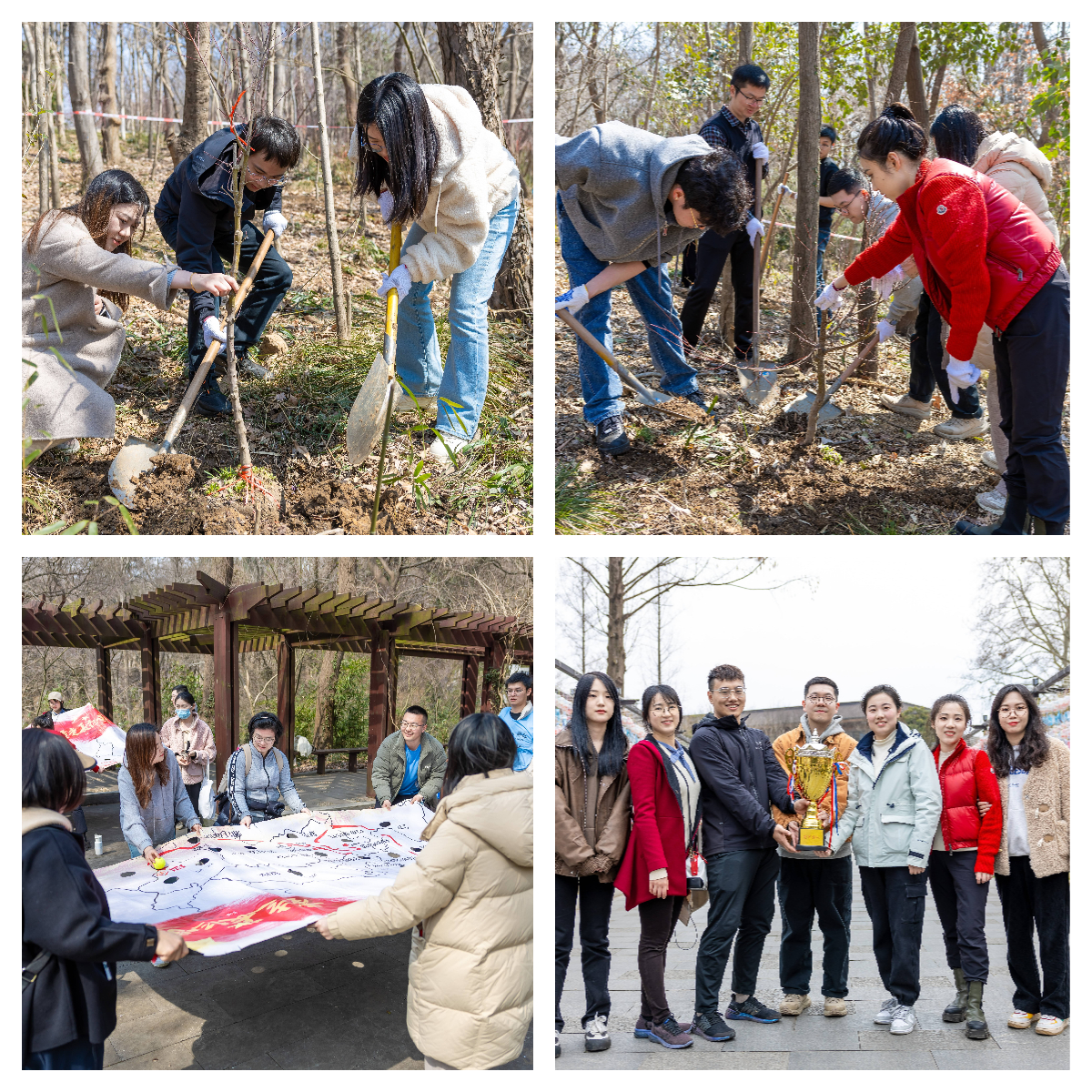 植樹現(xiàn)場一派繁忙景象,大家互相配合,一起揮鍬鏟土、培土圍堰、提水澆灌,合力種下一株株雞爪槭。在大家的共同努力下,一棵棵新種下的雞爪槭在微風(fēng)中展現(xiàn)出勃勃生機(jī),為春天的南京增添了一道綠色風(fēng)景。