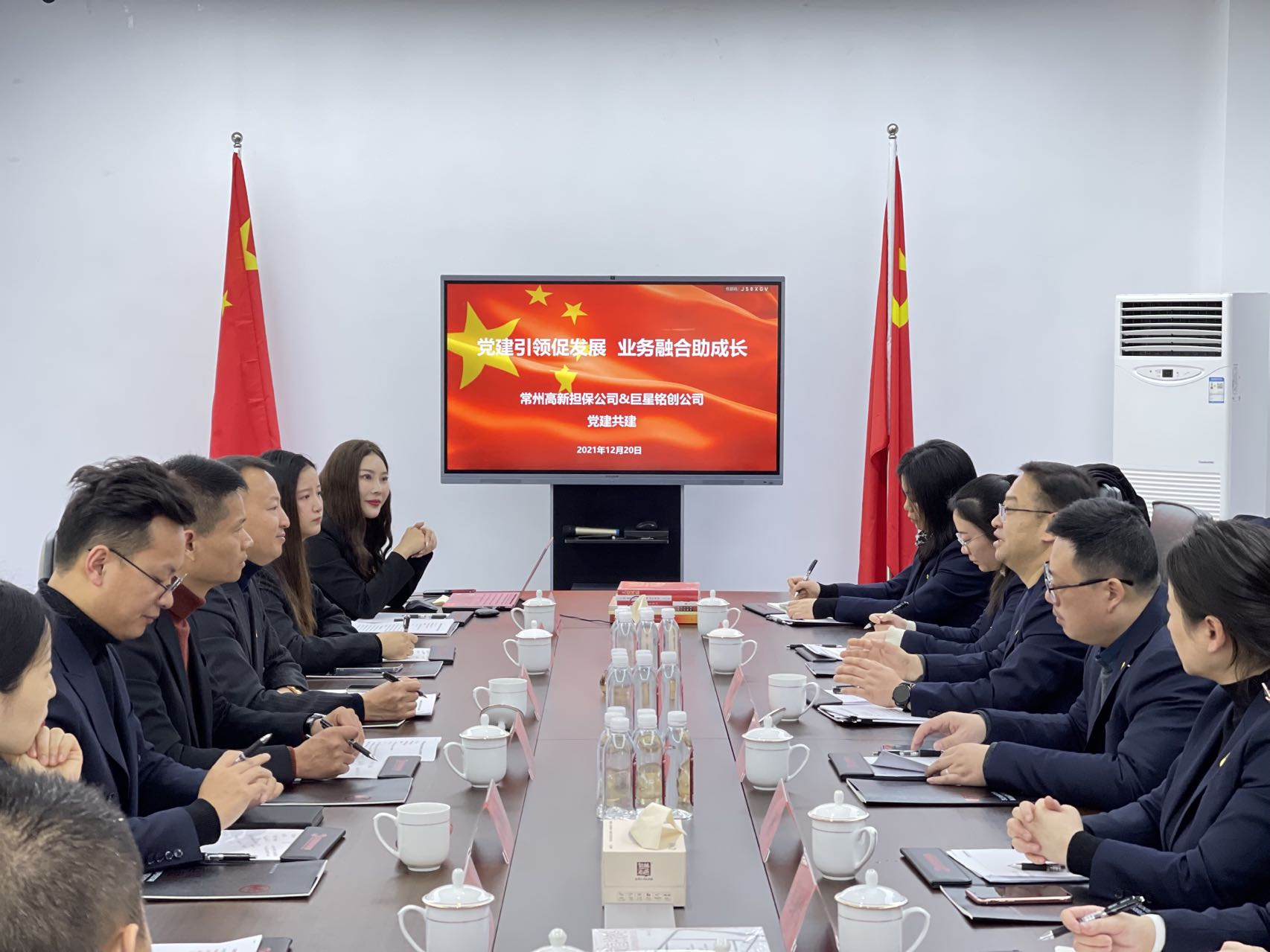 12月20日,常州高新?lián)9窘M織常州分公司、武進(jìn)擔(dān)保公司有關(guān)人員,深入常州巨星銘創(chuàng)公司走訪調(diào)研,開(kāi)展黨建共建活動(dòng)。