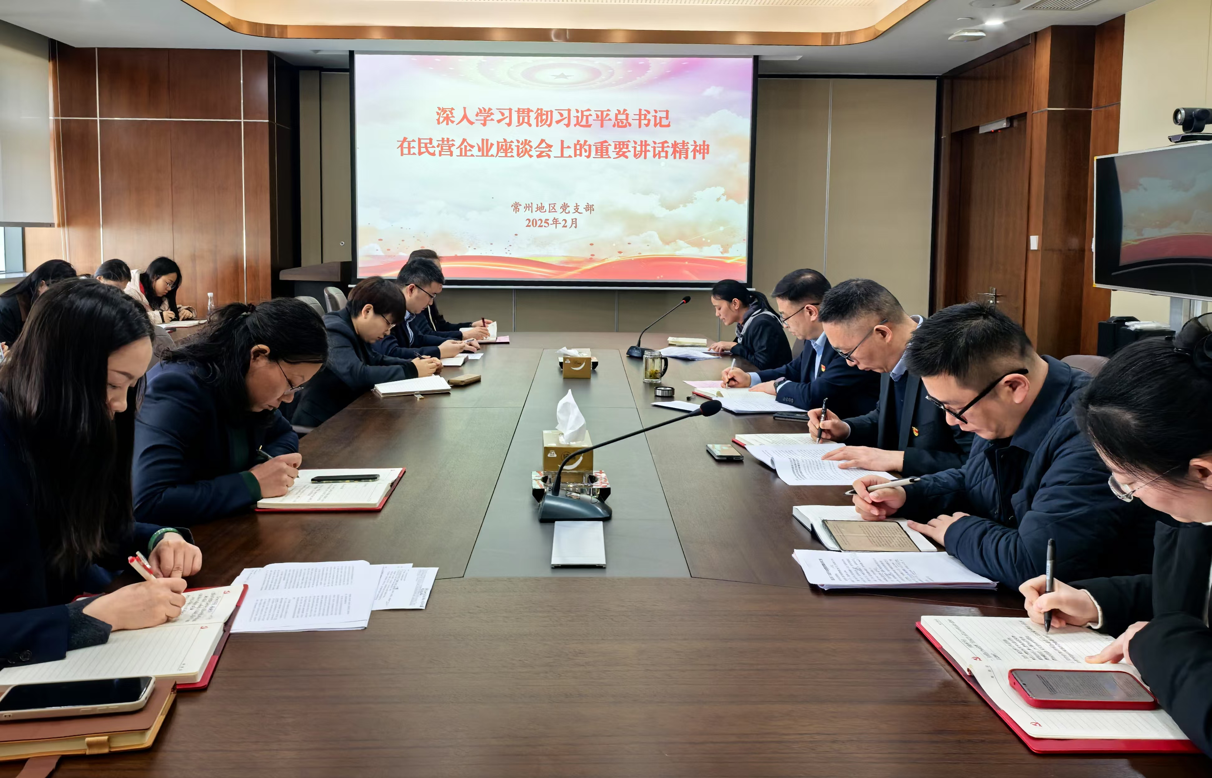 2月26日,常州地區黨支部開展月度集中理論學習,傳達學習習近平總書記在民營企業座談會上的重要講話精神。