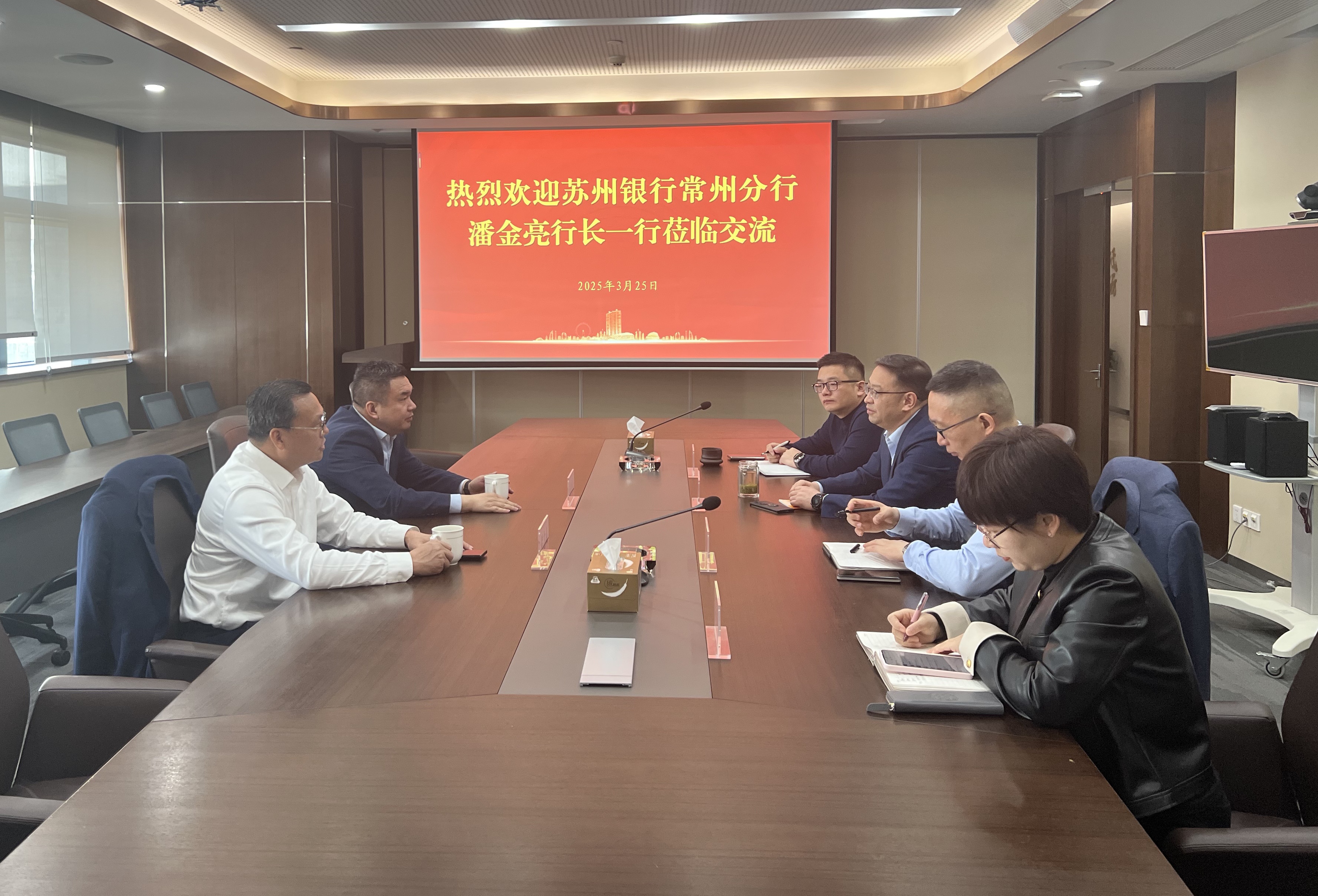 3月25日,蘇州銀行常州分行行長潘金亮到訪常州高新擔保,就深化銀擔合作進行座談交流。