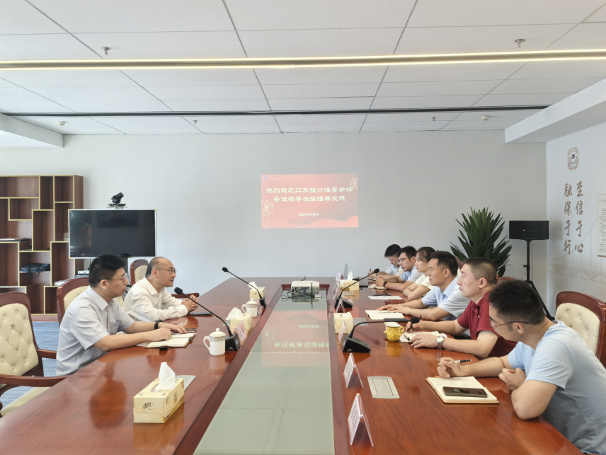 8月20日上午,江蘇銀行淮安分行副行長(zhǎng)吳勁松、普惠金融部總經(jīng)理邊江到淮安分公司開(kāi)展業(yè)務(wù)交流。雙方圍繞當(dāng)前合作成效、業(yè)務(wù)發(fā)展瓶頸及未來(lái)合作方向進(jìn)行了深入交流,并達(dá)成多項(xiàng)共識(shí)。