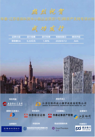 7月9日,科貸公司在上海證券交易所成功發(fā)行5.5億元“華泰-江蘇信??瀑J中小微企業(yè)貸款1號3期資產(chǎn)支持專項計劃”,順利完成總規(guī)模15億元的中小微企業(yè)貸款資產(chǎn)支持專項計劃發(fā)行工作。本期ABS期限3年,優(yōu)先級票面利率1.99%,創(chuàng)信保科貸資本市場融資利率新低。