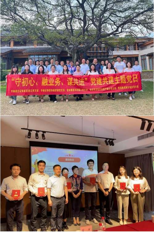 8月2日,集團本部第三黨支部、南京地區黨支部、租賃及資產聯合黨支部與華泰聯合證券南京地區黨支部、華泰證券債務融資部黨支部共同開展“守初心、融業務、謀共進”主題黨日活動。集團黨委委員、副總裁仇雪嶸、翟軍,華泰聯合證券執行委員會委員張雷出席活動。
