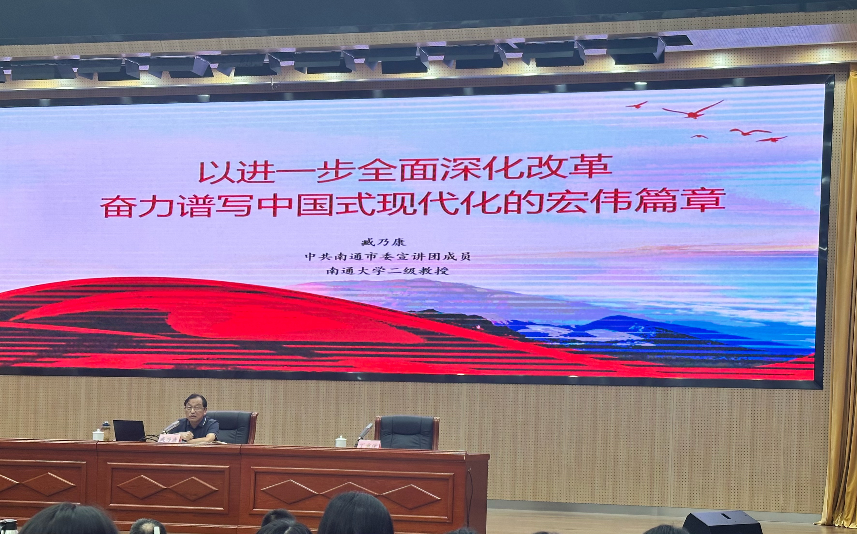 9月19日,南通市金融系統(tǒng)學(xué)習(xí)貫徹黨的二十屆三中全會(huì)精神宣講活動(dòng)在市委黨校召開,中共南通市委宣講團(tuán)成員、南通大學(xué)二級(jí)教授臧乃康作題為《以進(jìn)一步全面深化改革奮力譜寫中國式現(xiàn)代化的宏偉篇章》的專題輔導(dǎo),來自全市金融系統(tǒng)的近百名代表參加活動(dòng),南通一體化區(qū)域參會(huì)。