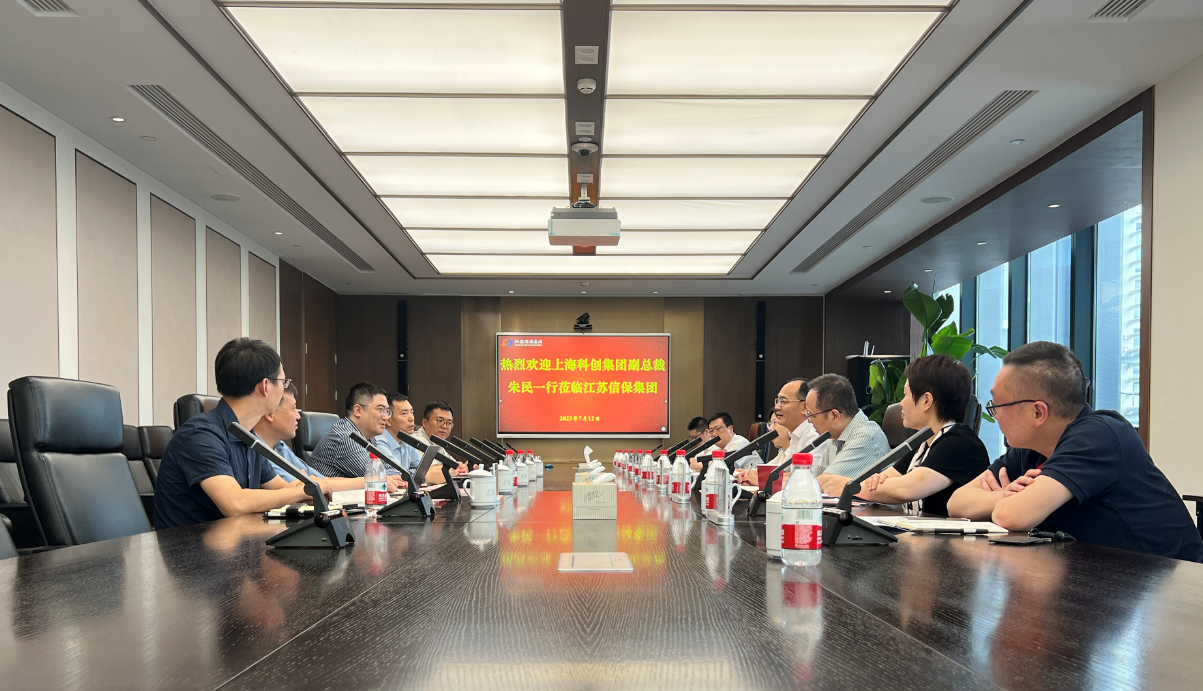 7月12日,集團(tuán)黨委委員、副總裁殷益東與到訪的上海科技創(chuàng)業(yè)投資(集團(tuán))有限公司黨委委員、副總裁朱民一行交流座談。