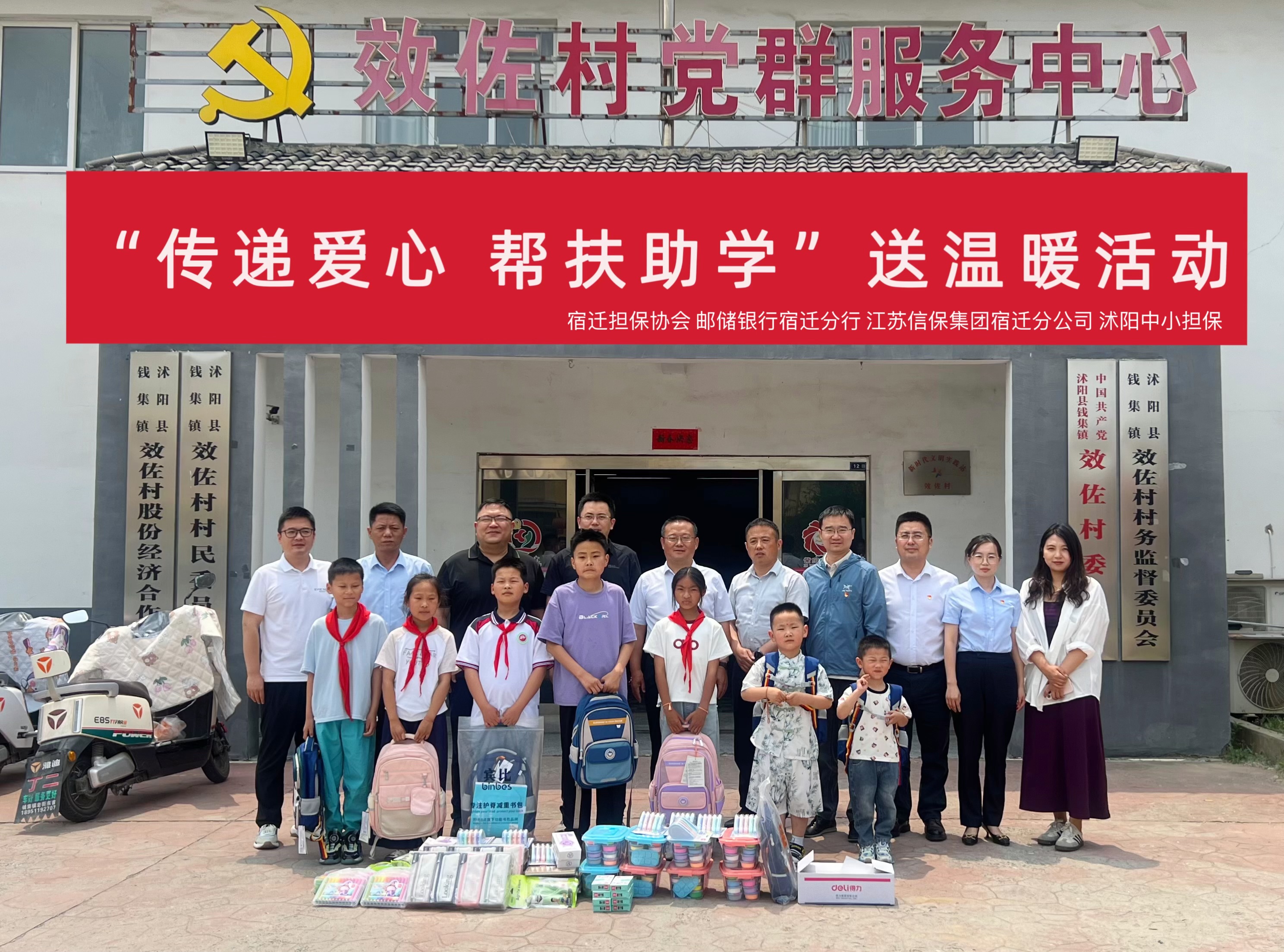 在“六一”國際兒童節(jié)來臨之際,宿遷分公司黨支部攜手市擔保協(xié)會黨支部、郵儲銀行宿遷分行黨支部、沭陽縣中小企業(yè)融資擔保有限公司黨支部,共赴集團鄉(xiāng)村振興對口幫扶點 —— 錢集鎮(zhèn)效佐村,開展“傳遞愛心 幫扶助學”黨建共建活動,為孩子們送去節(jié)日關懷,讓紅色溫暖浸潤童心。