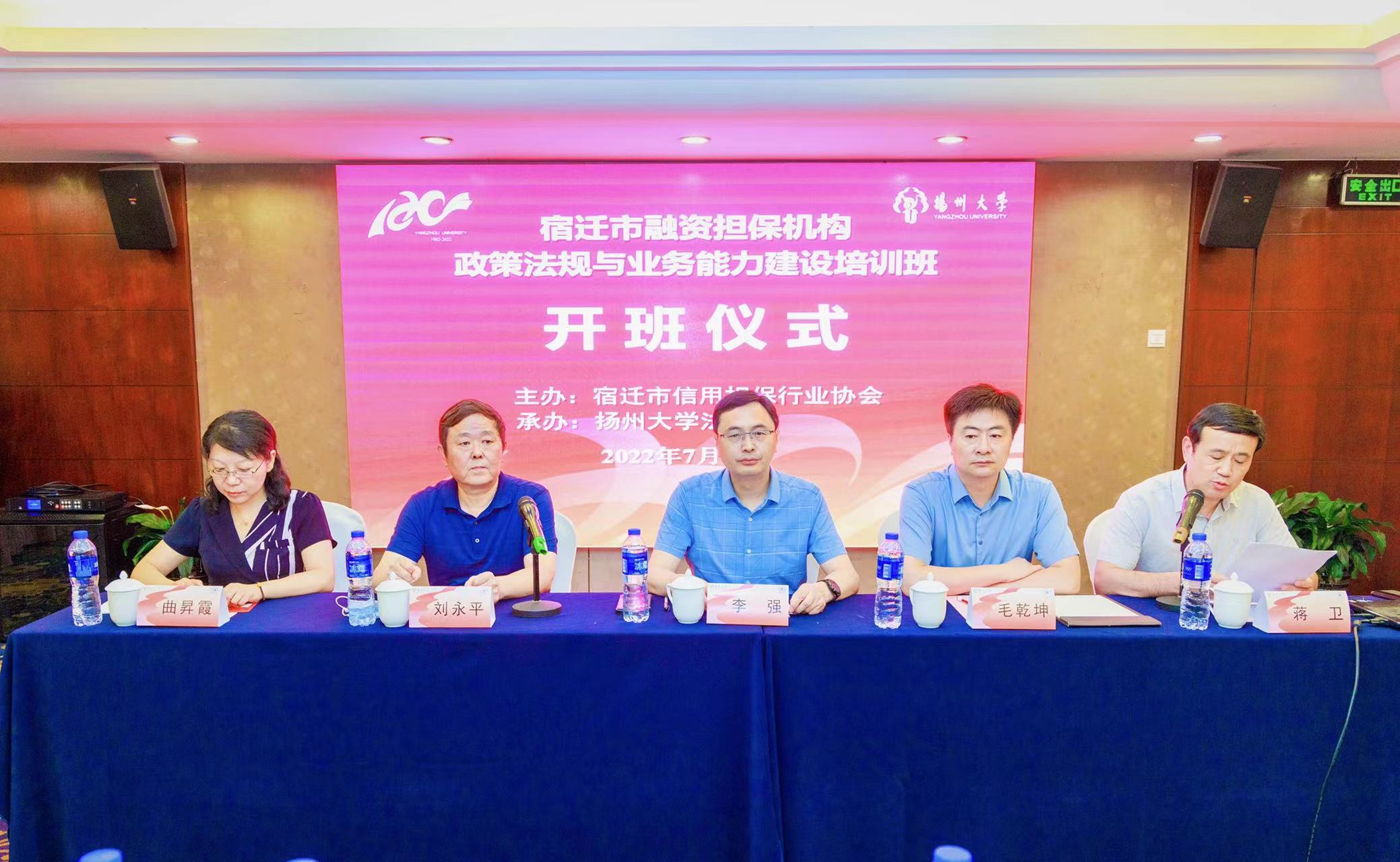 7月19日至22日,宿遷分公司聯(lián)合揚州大學法學院開展宿遷市融資擔保機構(gòu)政策法規(guī)與業(yè)務能力建設培訓。省地方金融監(jiān)管局監(jiān)管二處副處長毛乾坤、宿遷市地方金融監(jiān)管局副局長李強出席開班儀式并講話,揚州大學法學院黨委書記劉永平致歡迎詞,市擔保行業(yè)協(xié)會會長、宿遷分公司總經(jīng)理蔣衛(wèi)主持并作動員講話。揚州大學法學院副院長曲昇霞等參加開班儀式。