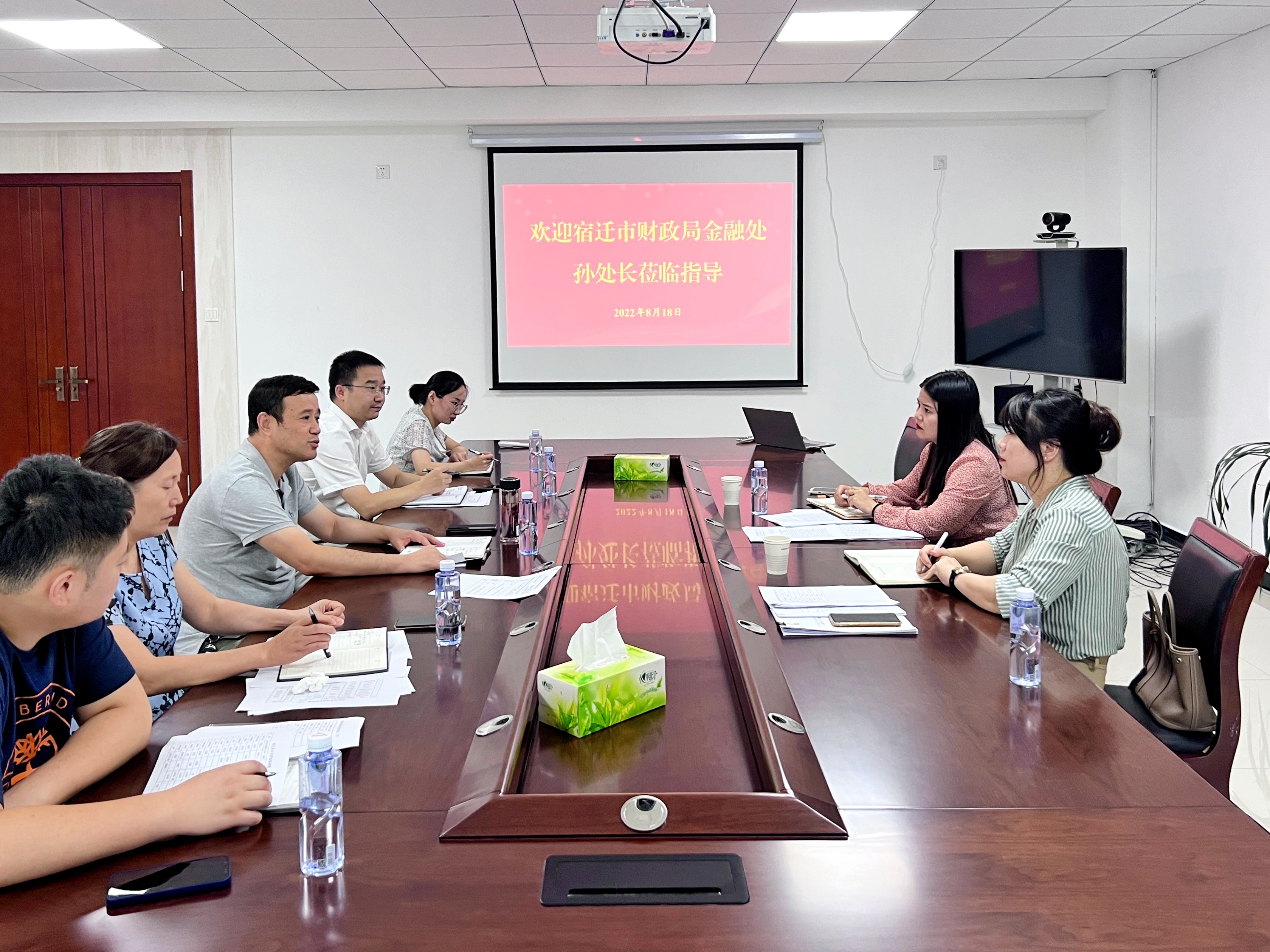 8月18日,宿遷市財政局金融處主要負責人一行到訪宿遷分公司,就地方政府性融資擔保機構的作用發揮、機制健全、動能激發等方面開展專題調研。
