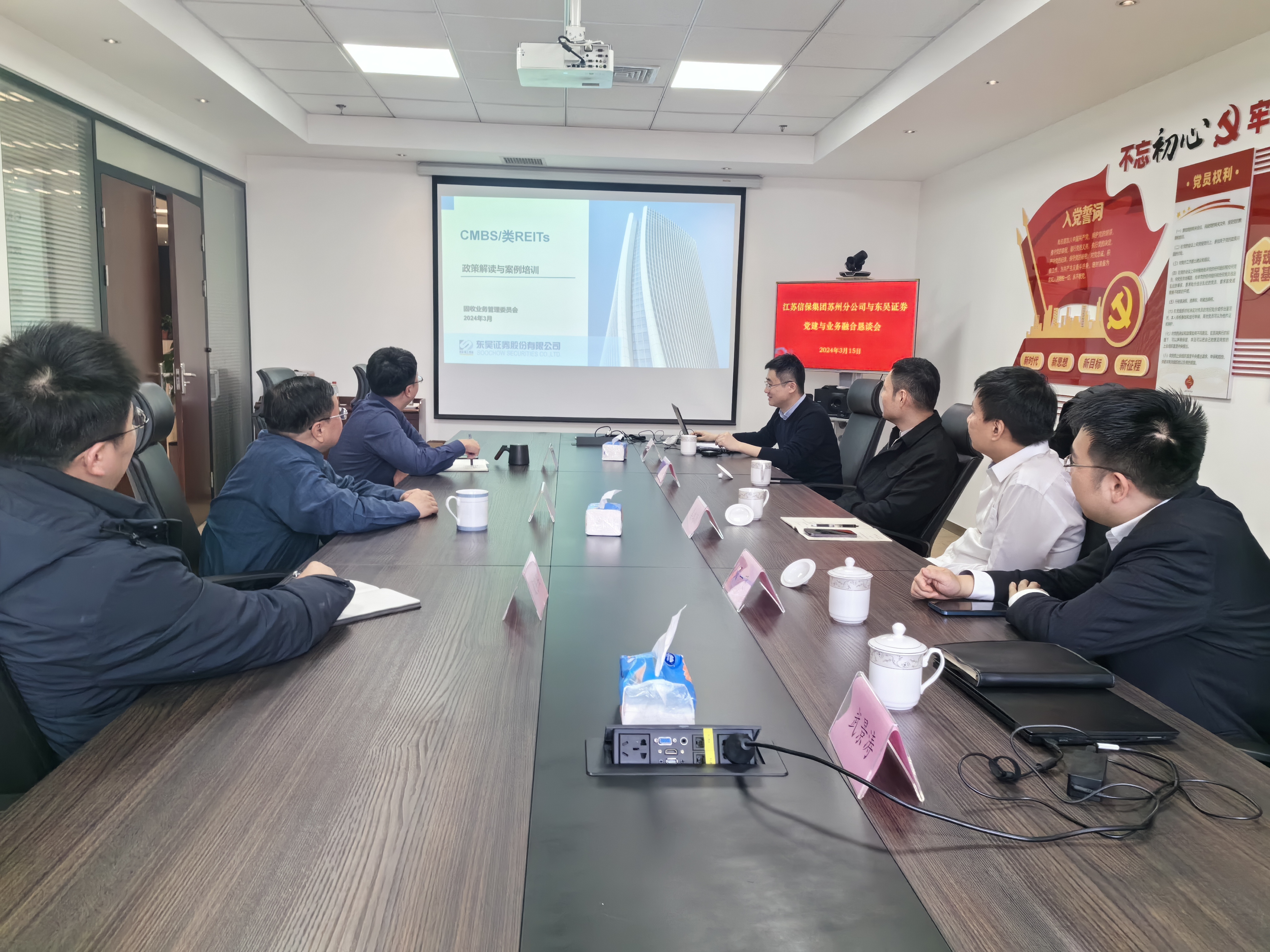 會上,雙方充分肯定了前期合作的成果,交流各自在黨建與業務相融合工作中取得的經驗成效,針對當前債券市場政策、平臺企業融資狀況、雙方擬推進的項目等展開討論交流。現場東吳證券對CMBS、類REITs政策進行了解讀與案例分析。座談會氣氛熱烈、交流深入、富有成效,為雙方下一步加強合作奠定堅實基礎。