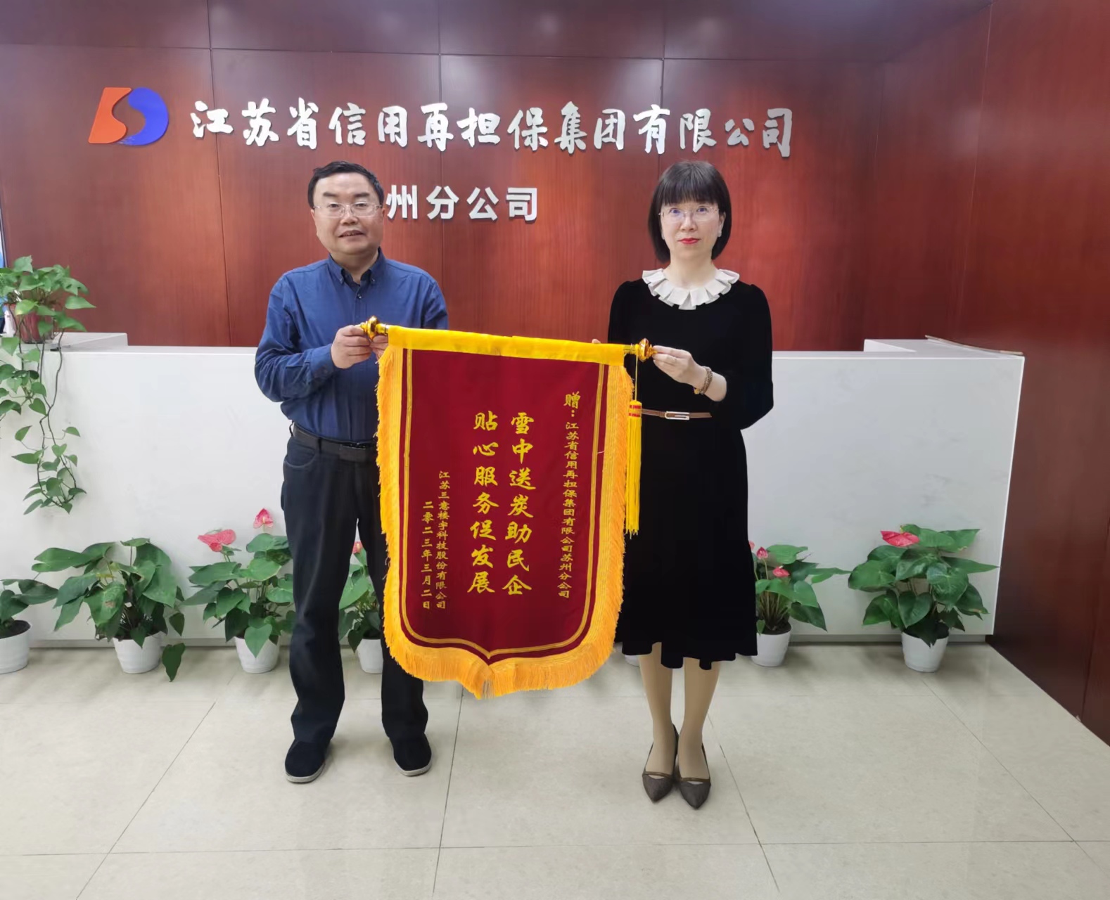 近日,江蘇三意樓宇科技股份有限公司(以下簡稱“三意樓宇”)黨支部書記李曉霞一行來到蘇州分公司,送上一面“雪中送炭助民企 貼心服務促發展”的錦旗,對蘇州分公司多年來發揮金融力量助推企業發展表示感謝。