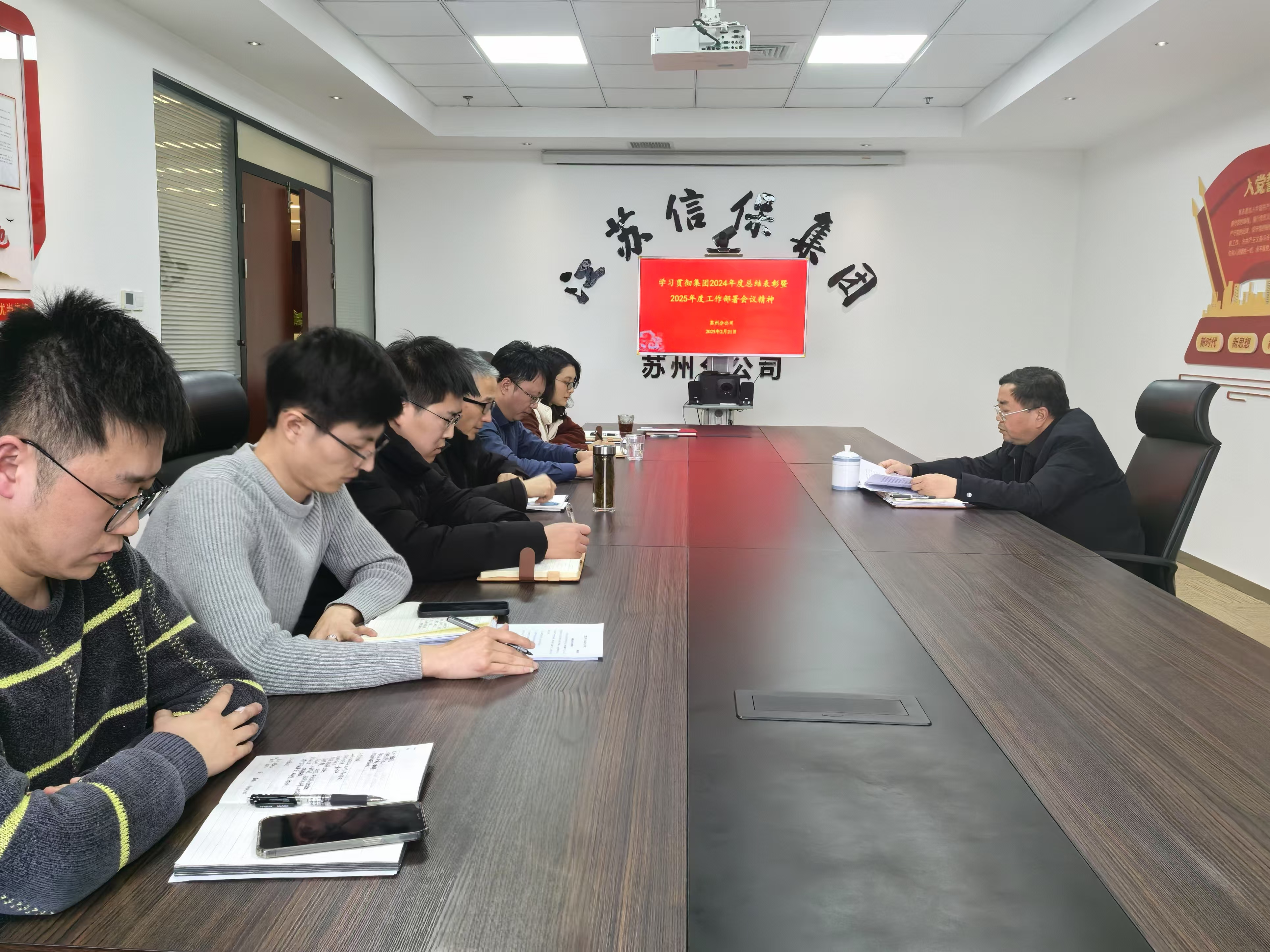 2月21日,蘇州分公司召開專題會議,傳達學習集團2024年度總結表彰暨2025年度工作部署會、2025年度全面從嚴治黨工作會議精神,公司全體員工參會。
