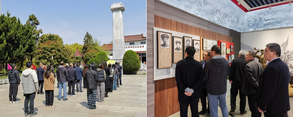陵園內(nèi)的烈士紀念堂展示了當?shù)亟倜沂康挠⒂率论E,一張張圖片、一段段文字都訴說著革命前輩在姜堰這片土地上的英雄壯舉,他們的英勇事跡和崇高精神,激勵著區(qū)域員工堅定信仰、勇毅前行,以實際行動傳承和弘揚革命精神。