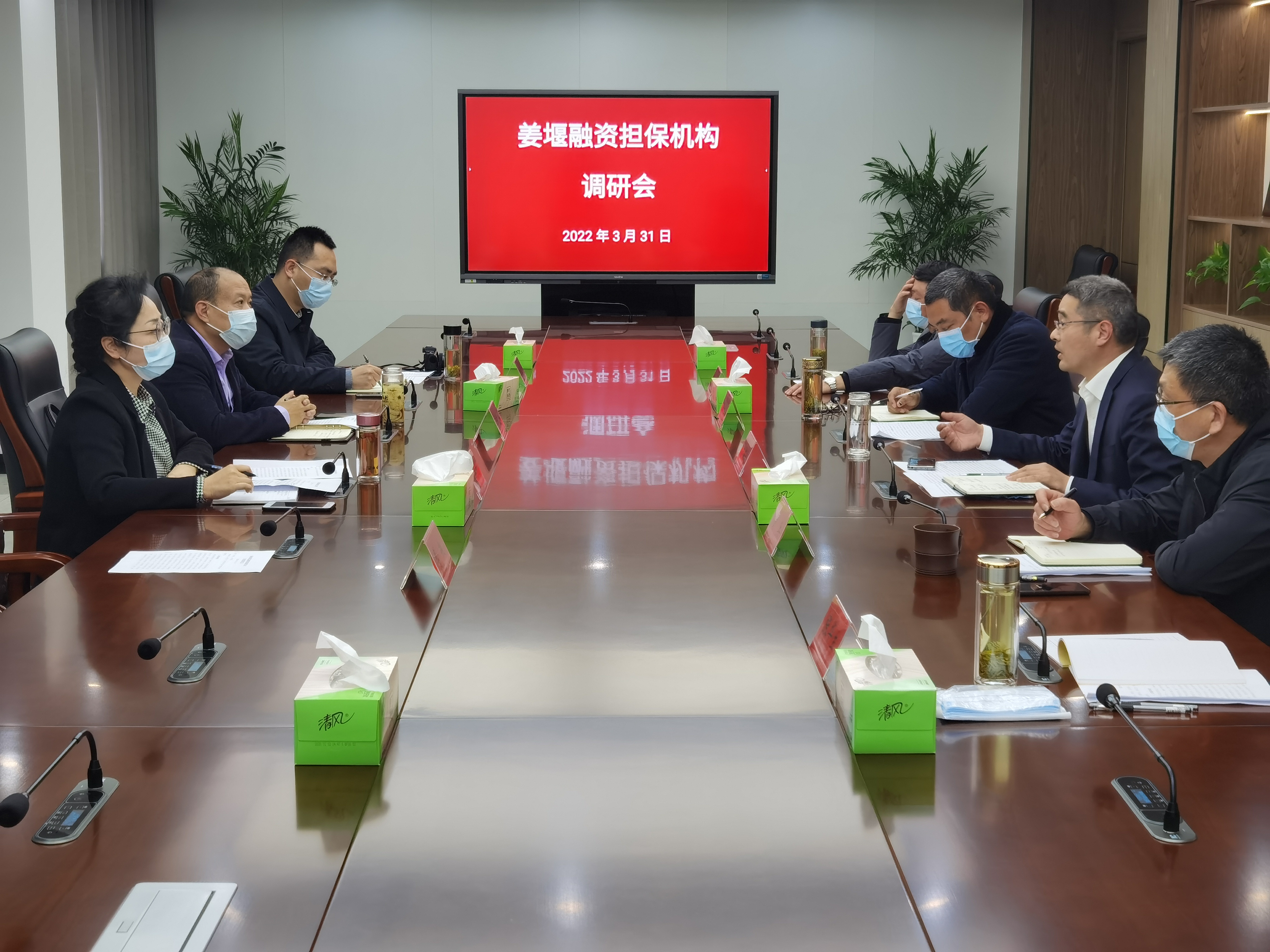 3月31日,泰州市姜堰區地方金融監管局黨組書記袁海燕、局長蔣曉斌一行專題調研泰州國信擔保。