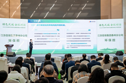 11月4日,泰州市地方金融監(jiān)管局聯(lián)合市生態(tài)環(huán)境局、人行泰州中支、泰州銀保監(jiān)分局,在市產(chǎn)融綜合服務(wù)中心舉辦“綠色鳳城·金環(huán)對話”2022年泰州市綠色金融政銀企對接活動。泰州市副市長周小慧出席并講話,市有關(guān)部門、部分金融機構(gòu)負責(zé)人及近80家企業(yè)負責(zé)人參加活動,泰州分公司應(yīng)邀參加會議并開展“環(huán)保擔(dān)”產(chǎn)品推介。
