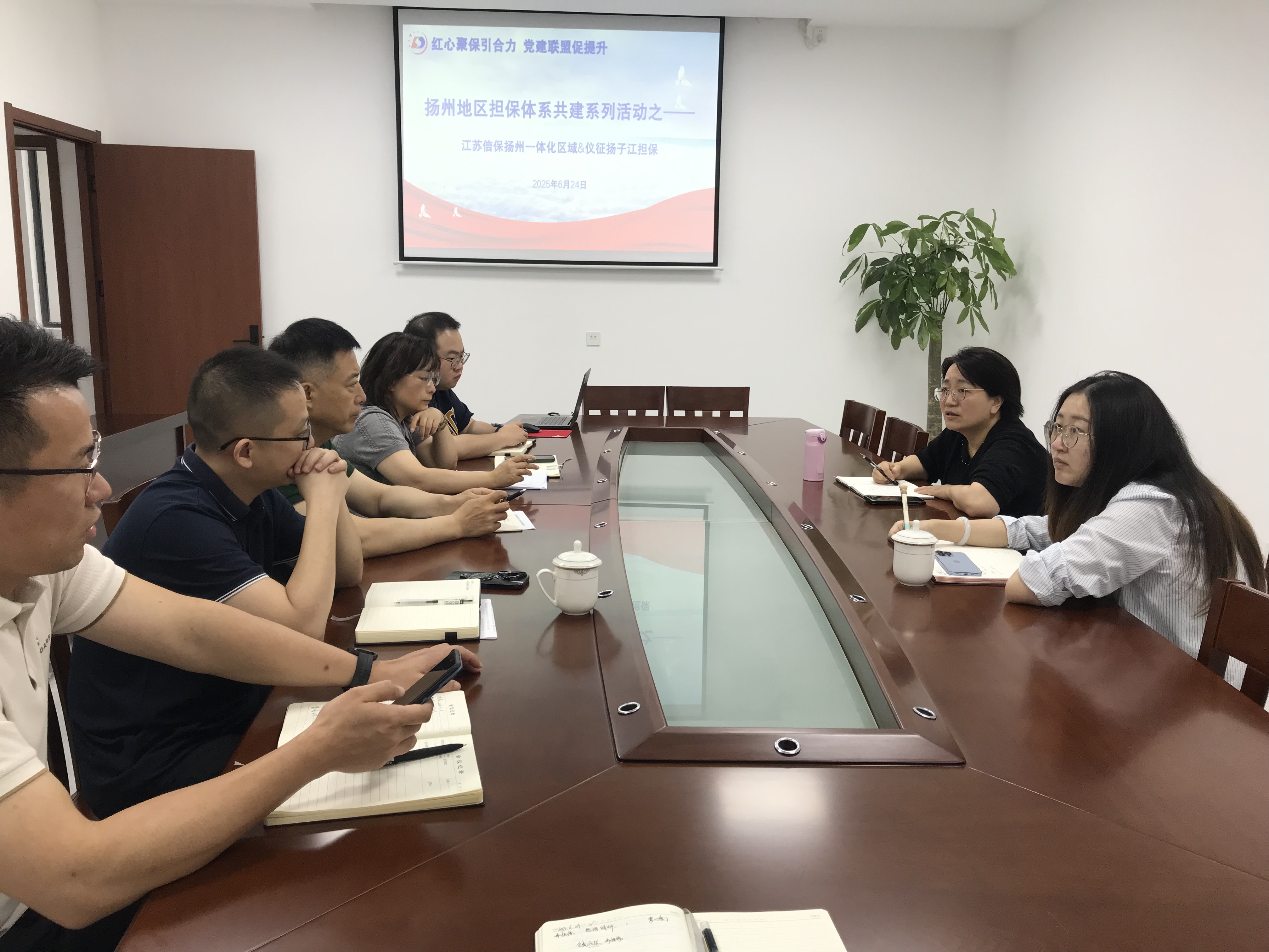 為充分發(fā)揮黨建引領(lǐng)核心作用,進(jìn)一步夯實(shí)揚(yáng)州地區(qū)再擔(dān)保體系擔(dān)保機(jī)構(gòu)間的黨建共建紐帶,深化廉潔伙伴關(guān)系。近期,揚(yáng)州地區(qū)黨支部走進(jìn)黨建共建廉潔伙伴聯(lián)盟單位高郵東方郵都、儀征揚(yáng)子江體系擔(dān)保機(jī)構(gòu),聯(lián)合開展黨建共建活動(dòng),為再擔(dān)保體系的高質(zhì)量發(fā)展注入紅色動(dòng)能。