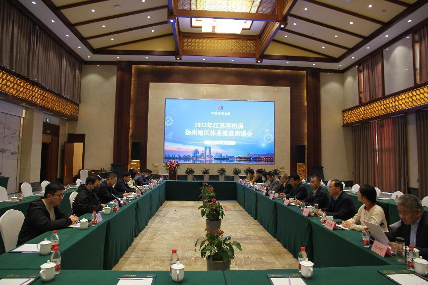 11月25日,由江蘇信保集團揚州一體化區(qū)域承辦的2022年度揚州地區(qū)再擔保體系建設(shè)座談會在高郵經(jīng)開區(qū)召開。揚州市財政局副局長高阜、揚州市金融監(jiān)管局副局長許立宏、江蘇省融資再擔保有限責任公司有關(guān)負責同志、揚州一體化區(qū)域領(lǐng)導班子和體系內(nèi)的融資擔保公司相關(guān)負責人參與座談,與會人員圍繞國擔基金再擔保業(yè)務政策解讀、深化揚州再擔保體系建設(shè)、推動產(chǎn)品渠道創(chuàng)新、加強政銀擔合作等方面,進行了深入交流。