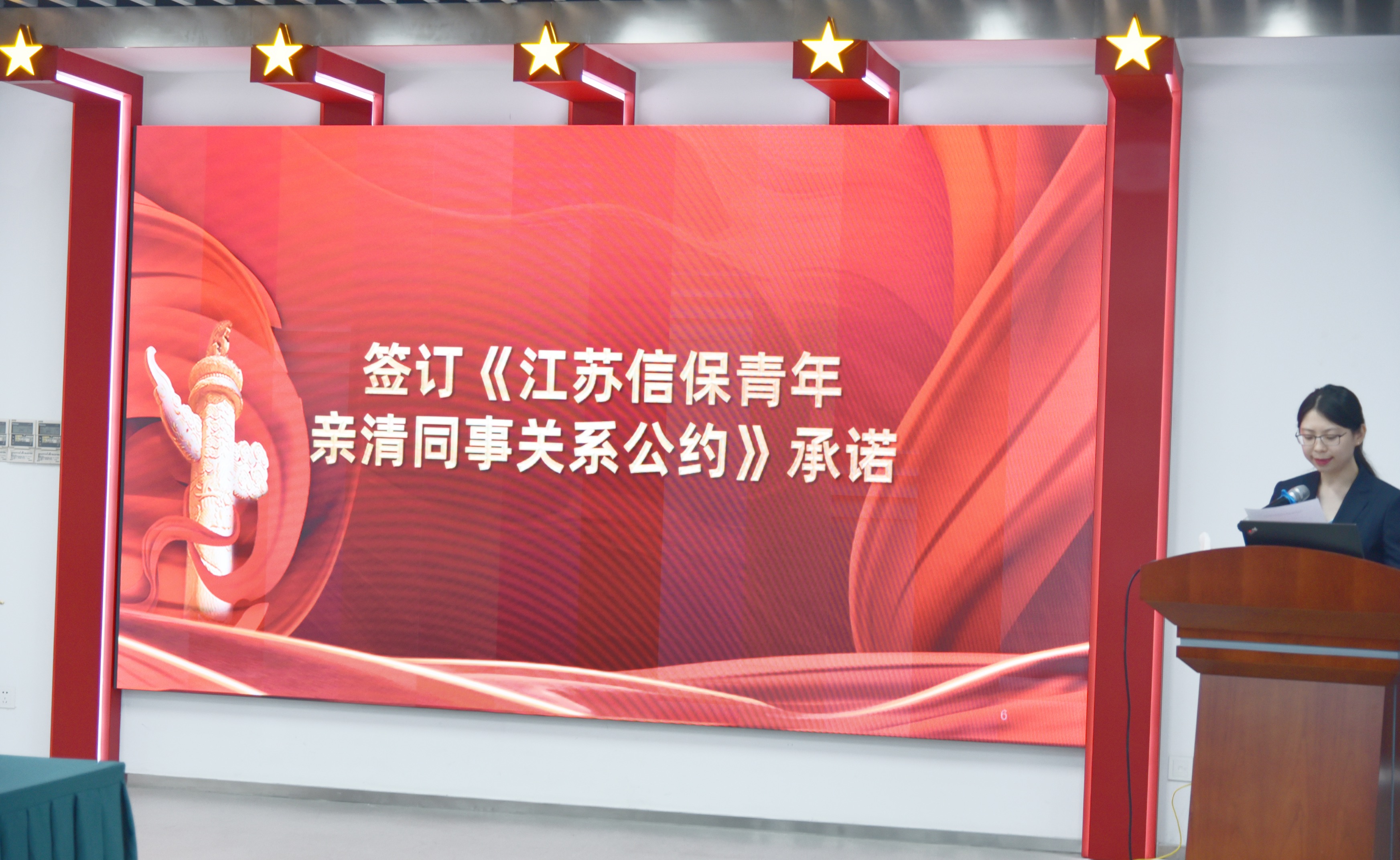 座談會上,金農(nóng)公司團員青年還集體簽署《江蘇信保青年親清同事關(guān)系公約》,并由青年員工代表作公開承諾。(金農(nóng)公司 王徽慧)