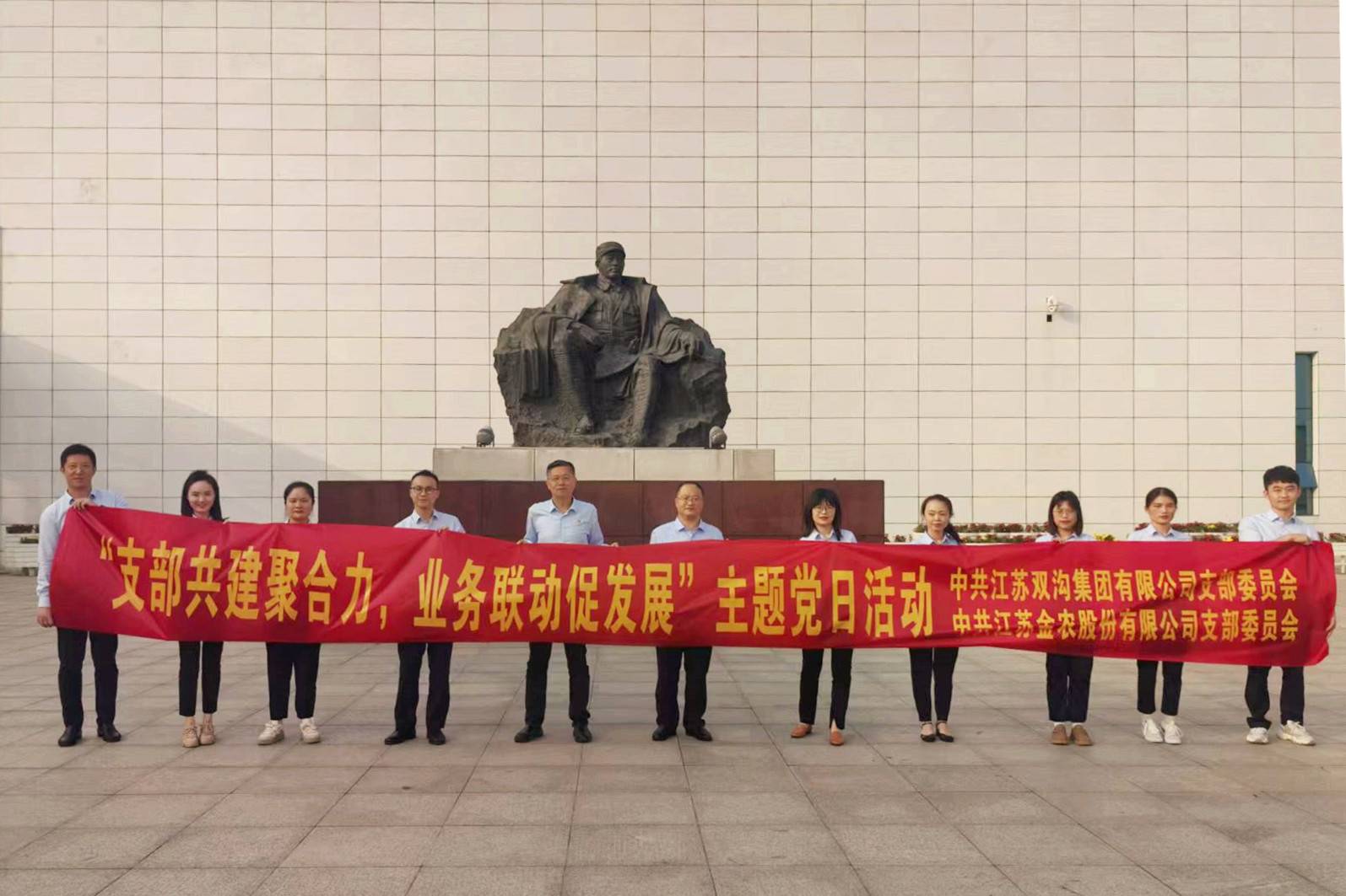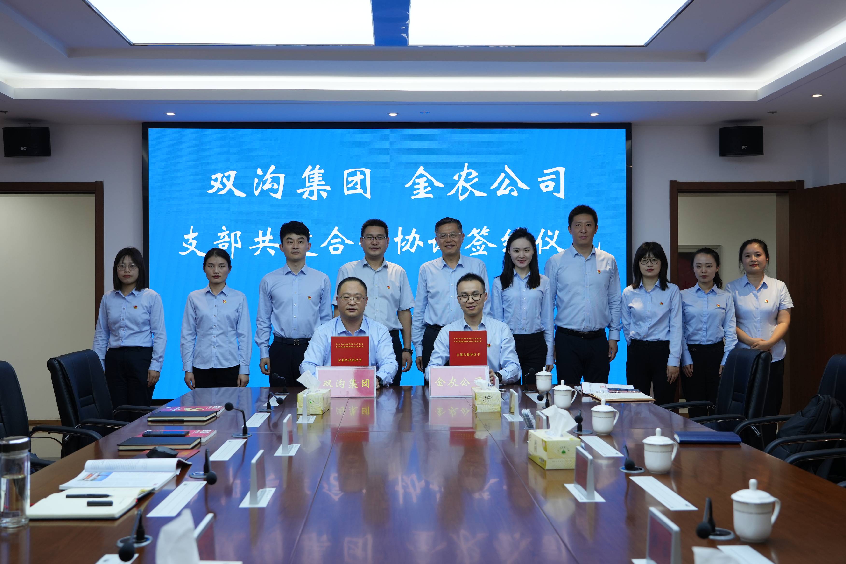 10月15-16日,金農公司相關負責人一行前往宿遷產業發展集團有限公司(以下簡稱“產發集團”),走訪產發集團旗下江蘇雙溝集團有限公司(以下簡稱“雙溝集團”)、小額貸款公司、融資擔保公司、金融資產公司等,總結雙方前期簽署戰略合作協議的落實、執行情況,進一步推動、深化雙方的全面合作,與雙溝集團簽訂黨支部共建合作協議,聯合開展主題黨日活動,以實際行動慶祝中華人民共和國成立75周年,助推黨建工作與業務發展深度融合、深入轉化。產發集團黨委副書記、總經理陳武熱情接待金農公司一行,并見證簽約儀式。