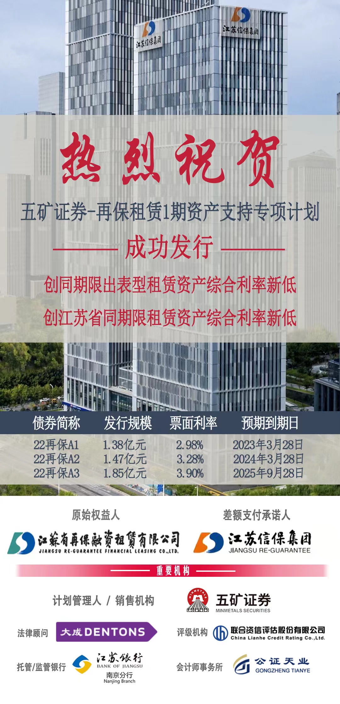 4月8日, 融資租賃公司首次在上海證券交易所發行總規模為4.99億元的出表型ABS產品—“五礦證券—再保租賃1期資產支持專項計劃”。此次發行取得圓滿成功,綜合利率創同期限同類資產最低。