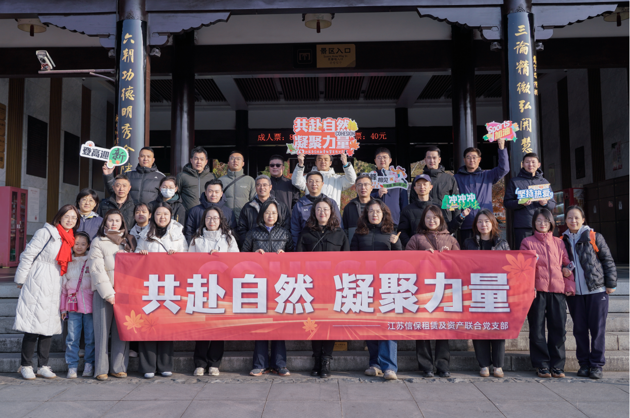 為豐富員工業余文化生活,進一步提升團隊活力和凝聚力,12月14日,江蘇信保租賃及資產聯合黨支部赴南京市棲霞山風景區,開展“共赴自然 凝聚力量”徒步登山活動,江蘇信保租賃及資產聯合黨支部、租賃及資產管理公司30余名員工及家屬參加活動。